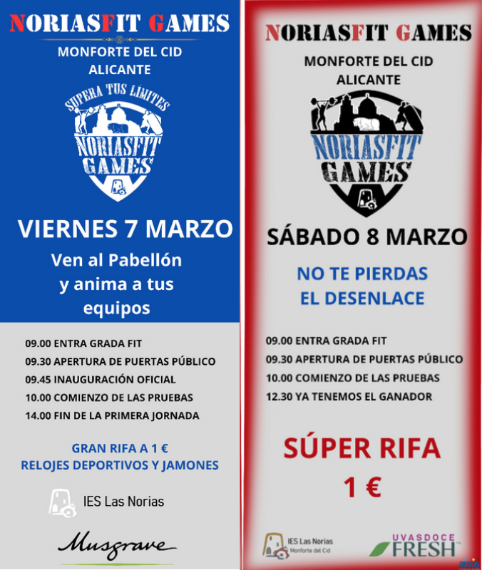El municipio de Monforte del Cid (Alicante) acogerá los esperados NoriasFit Games, un evento deportivo de alto nivel que se celebrará los días 7 y 8 de marzo en el pabellón del IES Las Norias. Durante dos jornadas intensas, atletas y aficionados al deporte podrán disfrutar de emocionantes pruebas de resistencia y fuerza.